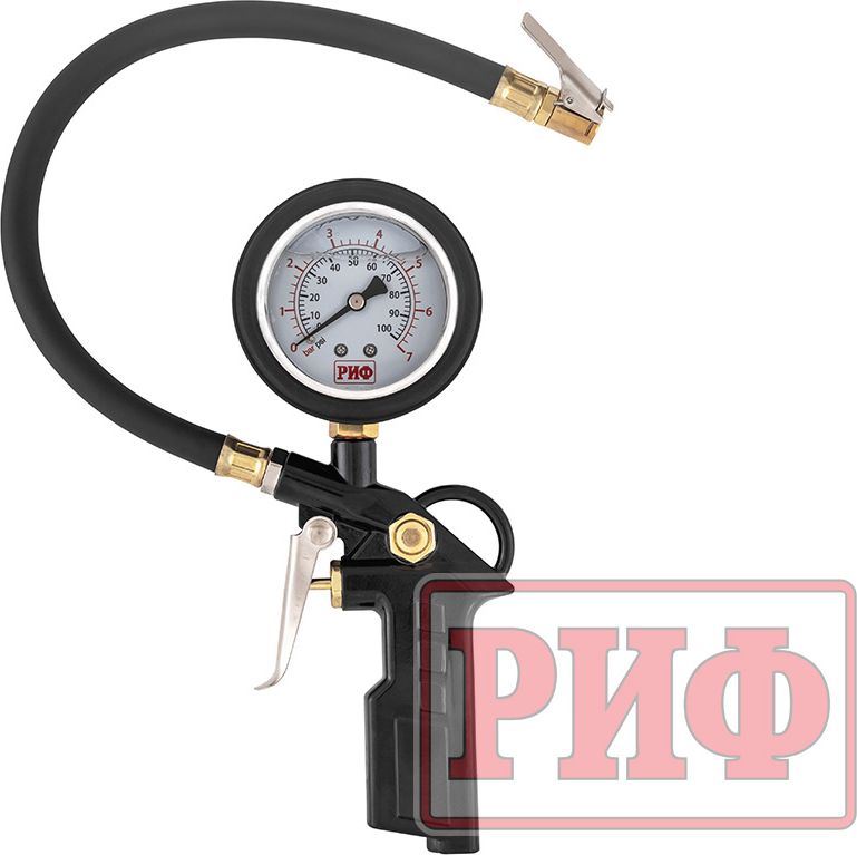 Пистолет для подкачки колес РИФ виброустойчивый (черный) с манометром от 0 до 7 атм.. Артикул RIF-GH-07