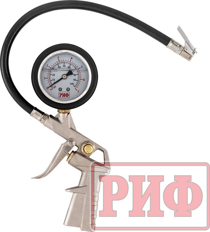 Пистолет для подкачки колес РИФ виброустойчивый (серебро) с манометром от 0 до 7 атм.. Артикул RIF-GH-05L