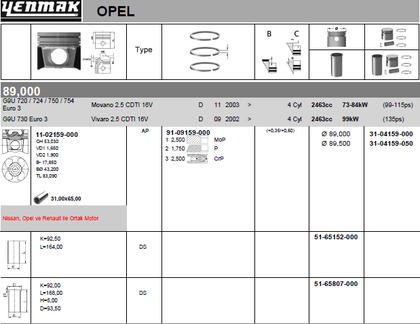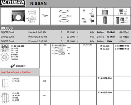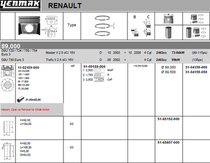 Поршень Yenmak для Renault Master II 2001-2010. Артикул 31-04159-050