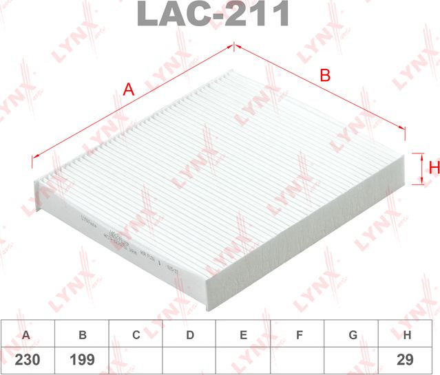 Салонный фильтр LYNXauto для Infiniti QX50 I 2013-2017. Артикул LAC-211C