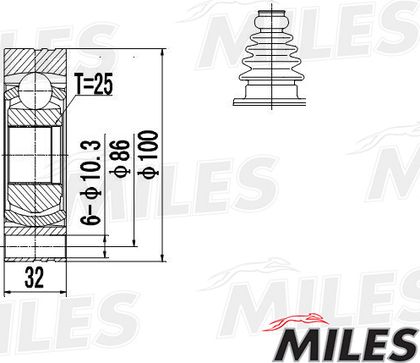 Шрус внутренний (граната) Miles задний для BMW 3 II (E30) 1983-1994. Артикул GA10011
