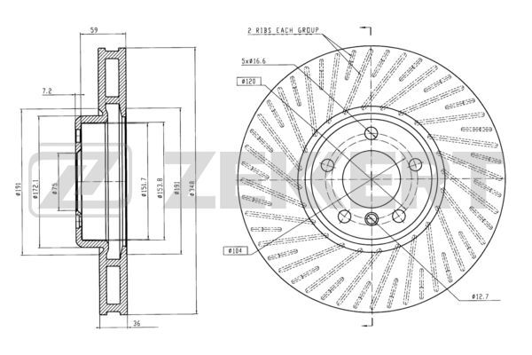 Тормозной диск Zekkert передний левый для BMW 6 III (F06/F13/F12) 2011-2018. Артикул BS-6244