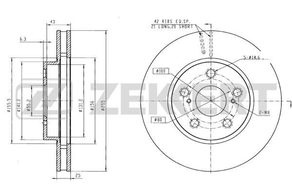 Тормозной диск Zekkert передний для Lexus CT I 2010-2018. Артикул BS-5146